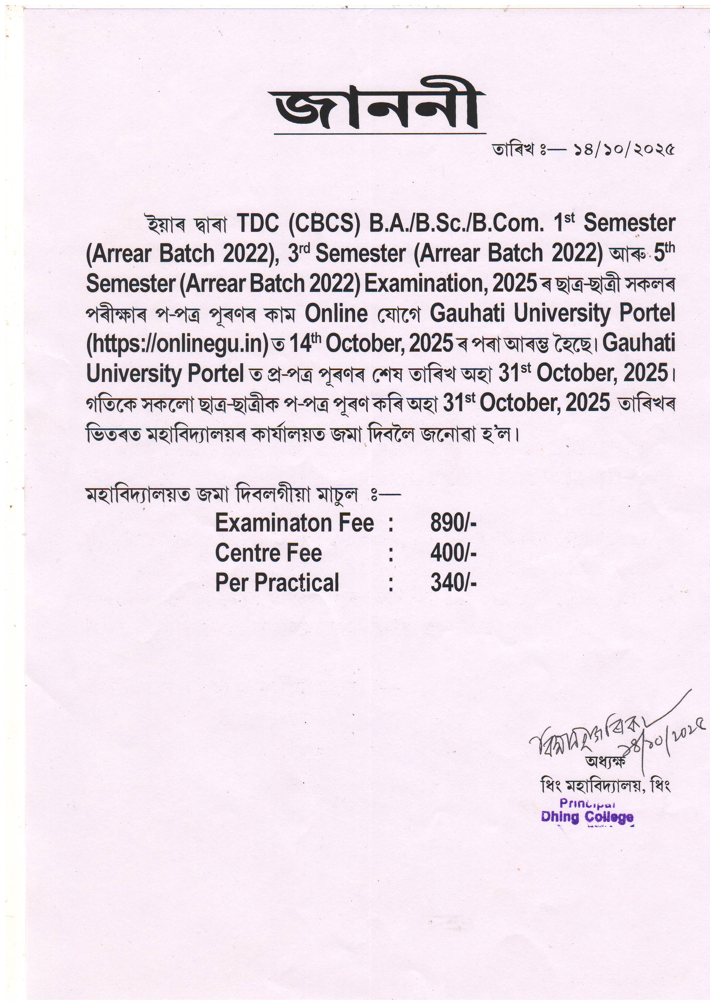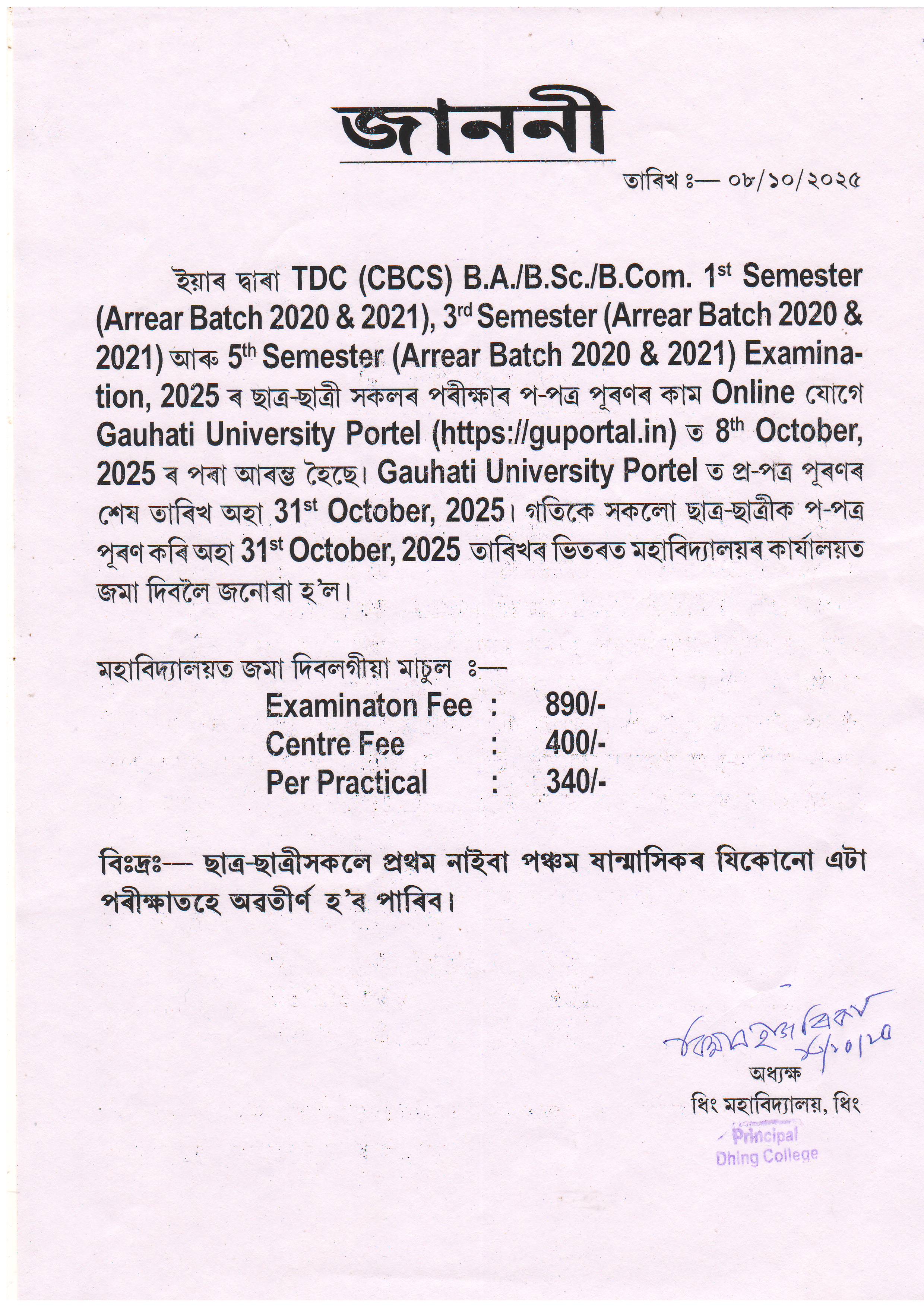 TDC (CBCS) 1st, 3rd & 5th Semester Examination Form Fillup Notice (Batch 2020-21), 2025