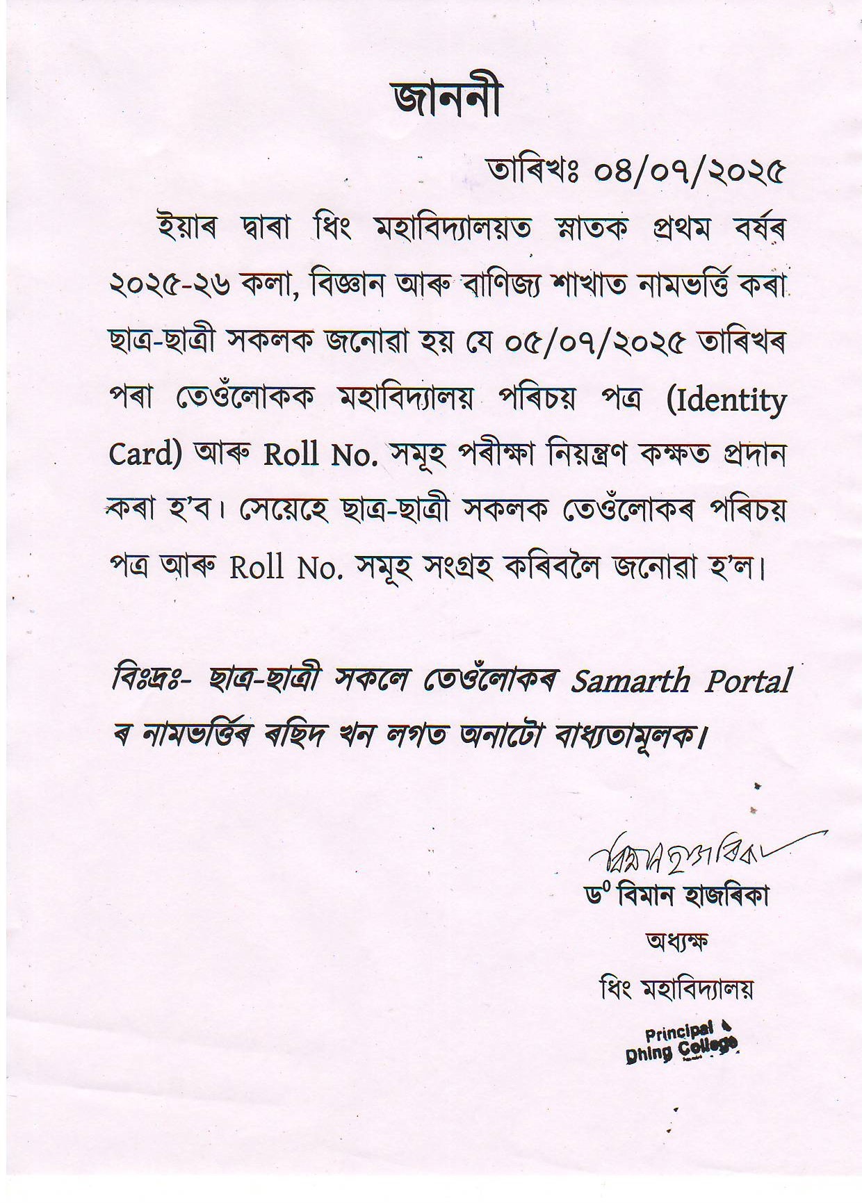 Registration Notice for H.S. 2nd Year Students in the UG Admission Portal (Samarth)